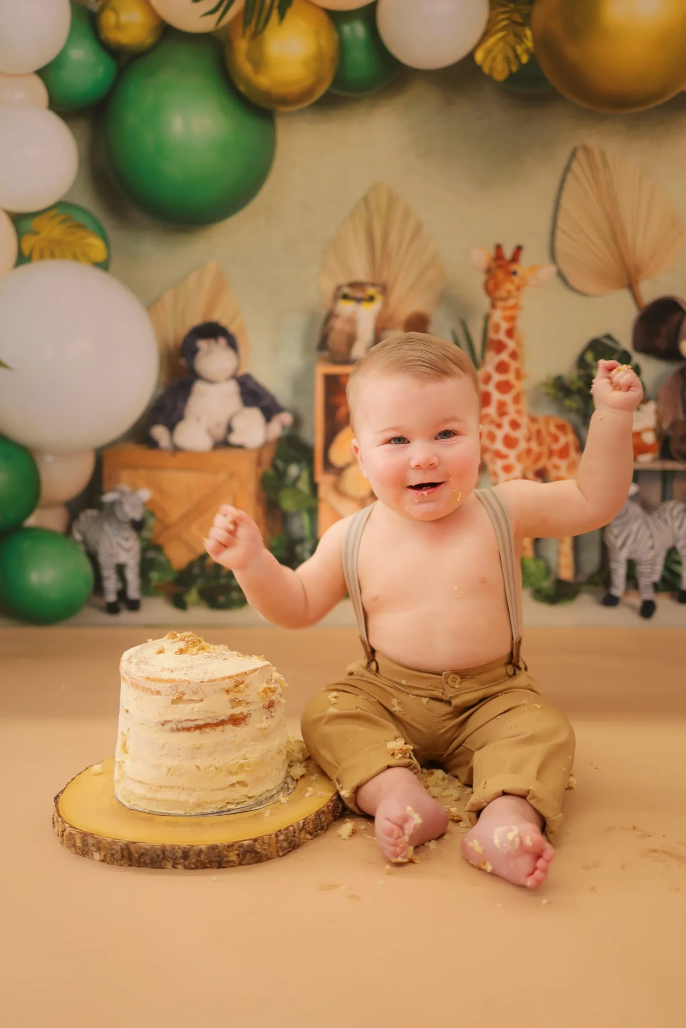 Toddler standing proudly after cake smash session