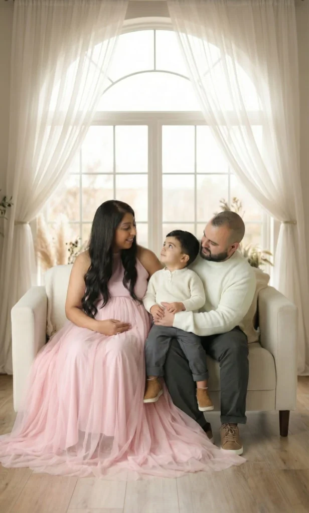 This recent Abbotsford studio session captured an amazing family during a special season of pregnancy, maternity, and anticipation for their newborn. The session blended maternity and family portraits, focusing on natural connection, soft window light, and relaxed moments between parents and child. The result is a timeless set of images that reflect the closeness of family life and the excitement of welcoming a new baby.